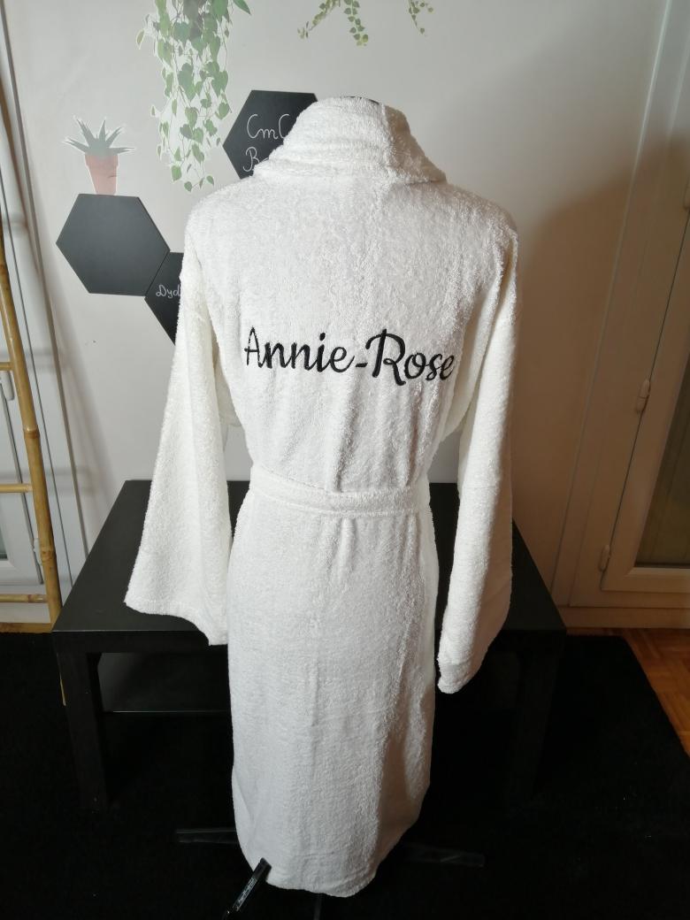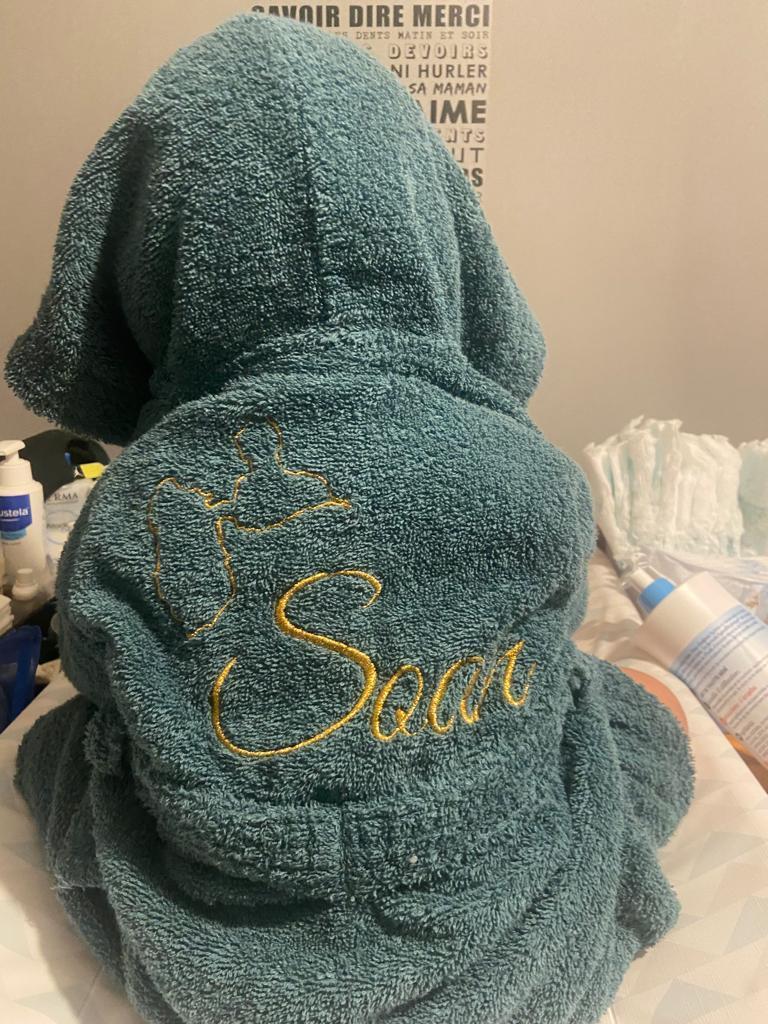 Superbe expérience j'en suis ravie Du coup j'ai pris un peignoir pour moi un peignoir pour mon mari et un protège carnet pour la fille d'une amie et un tapis pour son fils Je recommande travail sérieux et minutieux et rapide. Merci encore 🌹